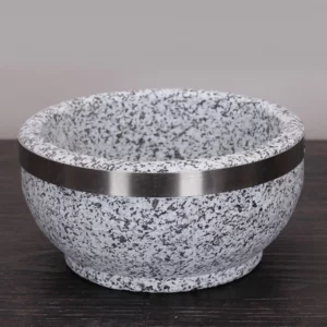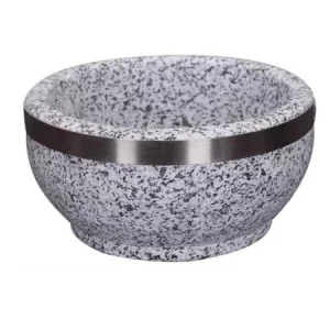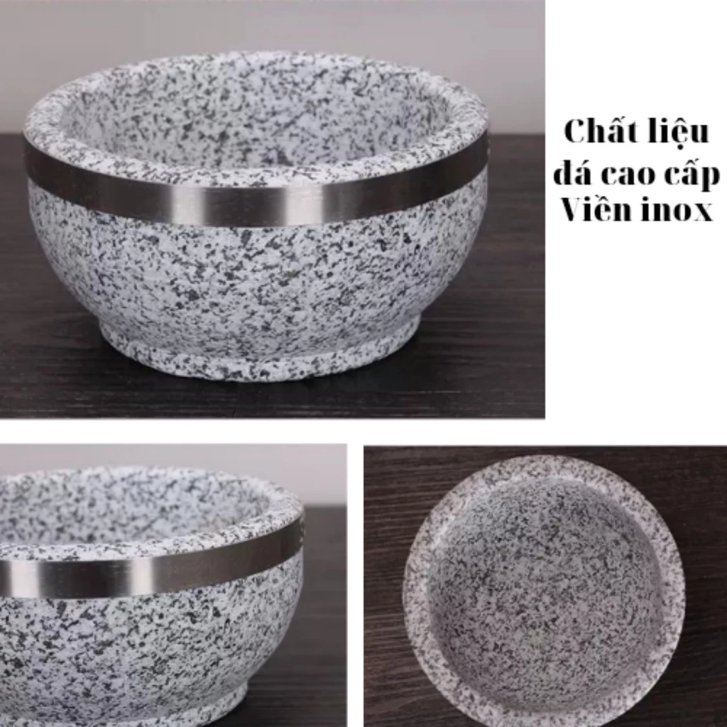 Bát đá được làm từ đá tự nhiên, hoa văn sáng màu bắt mắt. Đặc biệt, mặt ngoài được phủ tráng thêm lớp hợp kim nhôm nên bát chịu được nhiệt rất cao và độ bền hơn hẳn so với loại đá tự nhiên khác.