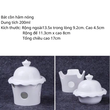 + Dùng được trong lò vi sóng với thiết kế 02 lớp, lớp trên là bát tô canh đựng các món ăn như: Canh, súp, thịt hầm, ..phía dưới là bếp đun được làm dầy dặn bằng sứ. >>> Giữa hai lớp có khoảng cách 5cm.