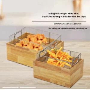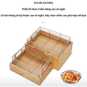 Đèn hâm nóng thức ăn buffet kèm giỏ chiên với thiết kế chuyên nghiệp, chất liệu inox cao cấp chống gỉ sét, đảm bảo độ bền vượt trội và tuổi thọ lâu dài. Khung đèn dày 0.7mm mang lại sự chắc chắn và sang trọng cho không gian bày tiệc.