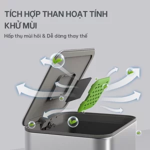 🔹 Bộ lọc mùi than hoạt tính: Loại bỏ tối đa mùi hôi từ rác thải , đảm bảo không gian luôn sạch sẽ