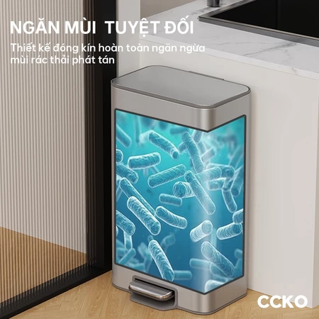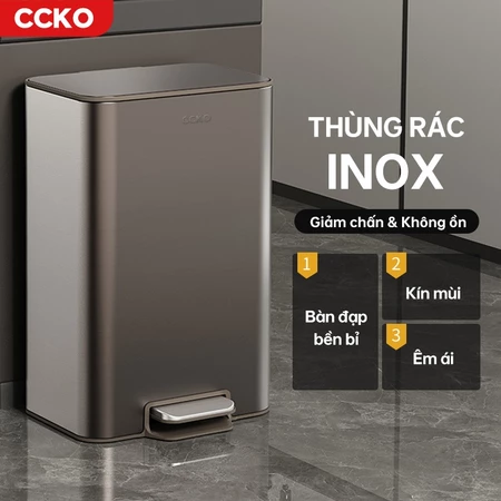 Thùng rác inox CCKO CK8865, thùng rác đạp chân giảm chấn không ồn để phòng khách, phòng bếp, nhà vệ sinh 8L 12L 15L 18L