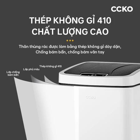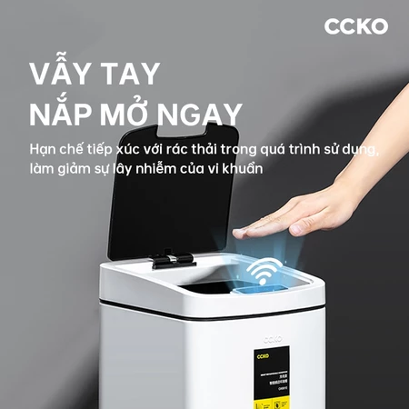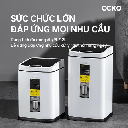 Thùng rác thông minh CCKO CK9915, thùng đựng rác cảm ứng, cảm biến thông minh inox 410 chống bám bẩn dung tích 6L 9L 12L