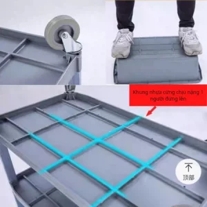• Có 04 bánh xe bọc cao su chống trơn, tích hợp khóa bánh. có 20 bánh điều hướng 360 độ